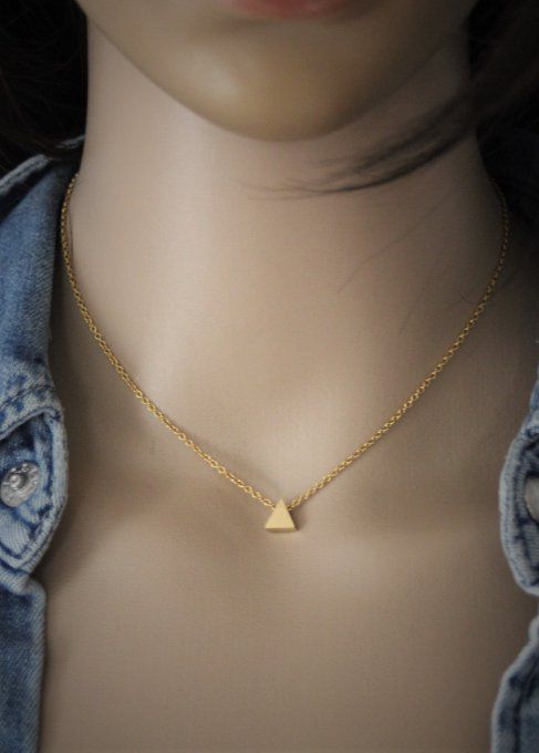 Collier fin et minimaliste en acier inoxydable doré avec perle triangle. Longueur réglable. Plusieurs longueurs disponibles.