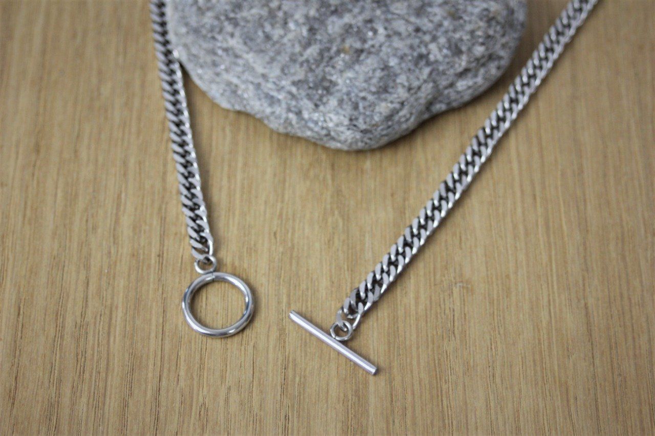 Collier en acier inoxydable maille gourmette XL avec fermoir T