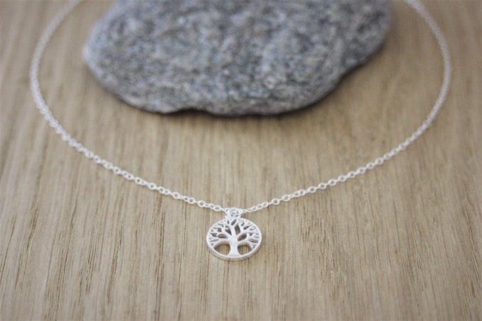 Collier argent massif 925 pendentif arbre de vie - ras de cou fin et minimaliste de yoga