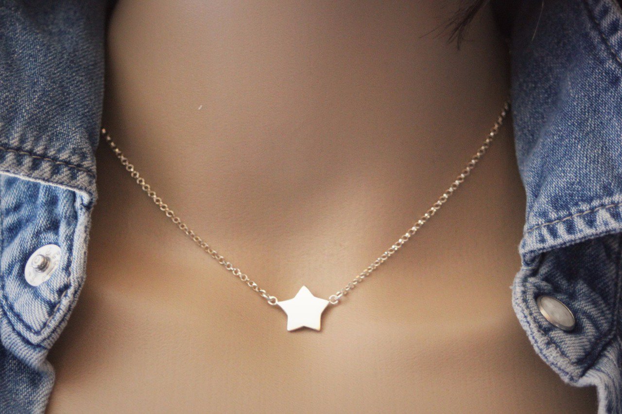 Collier fin et minimaliste en argent massif avec connecteur étoile en argent. Longueur réglable. Plusieurs longueurs disponibles.