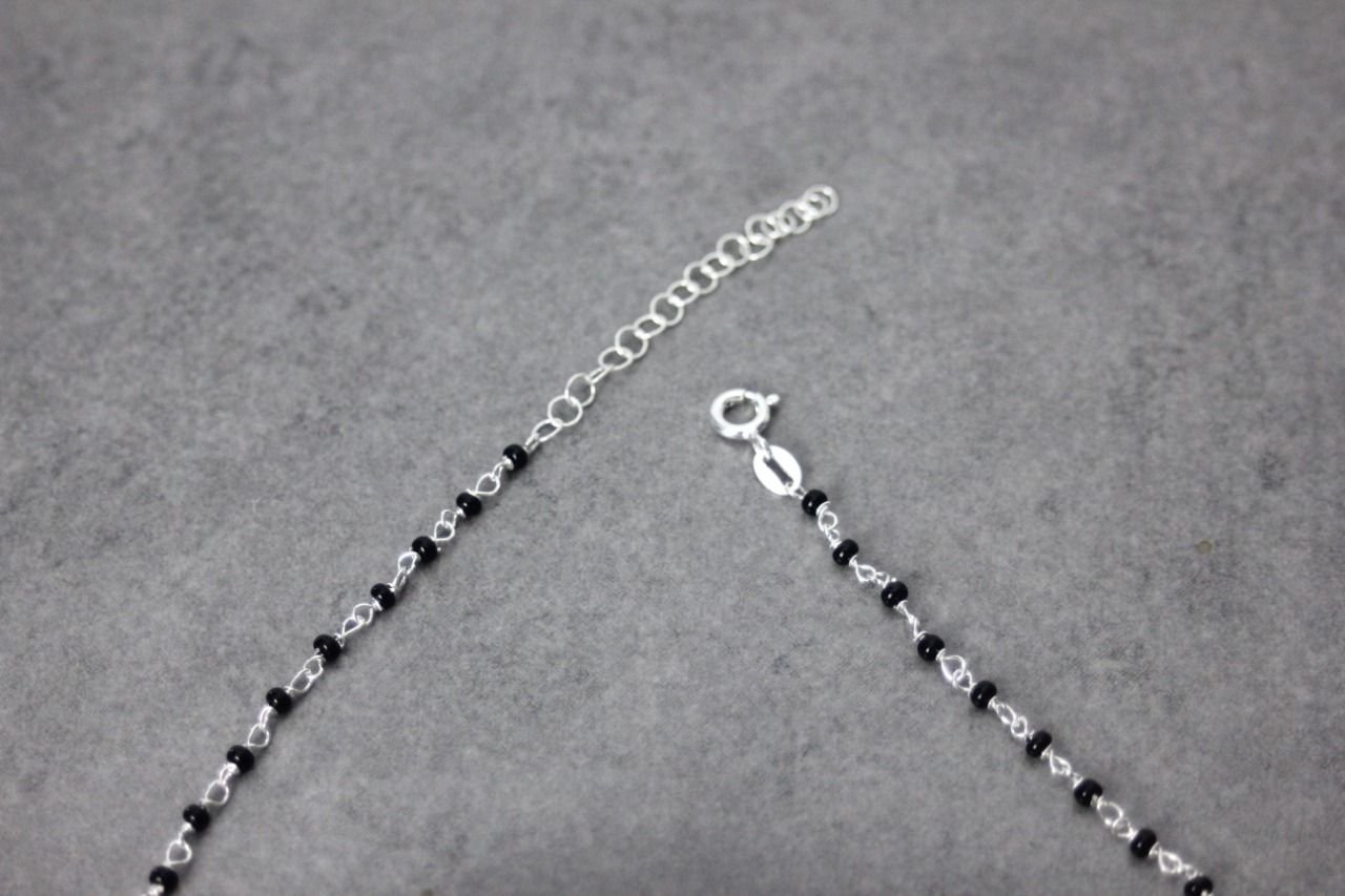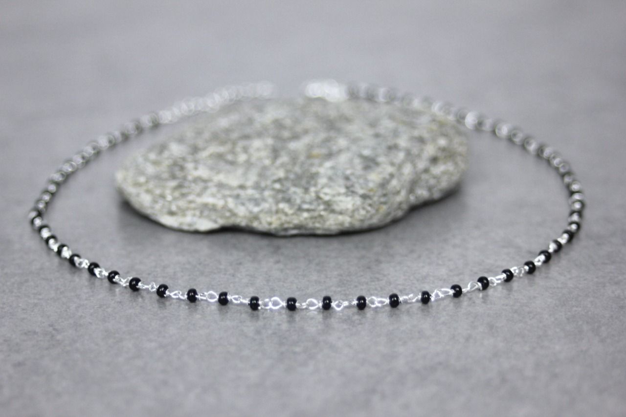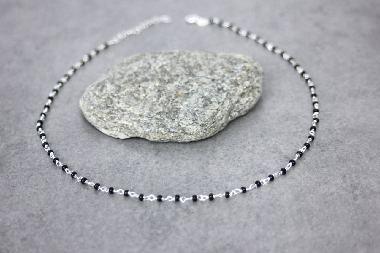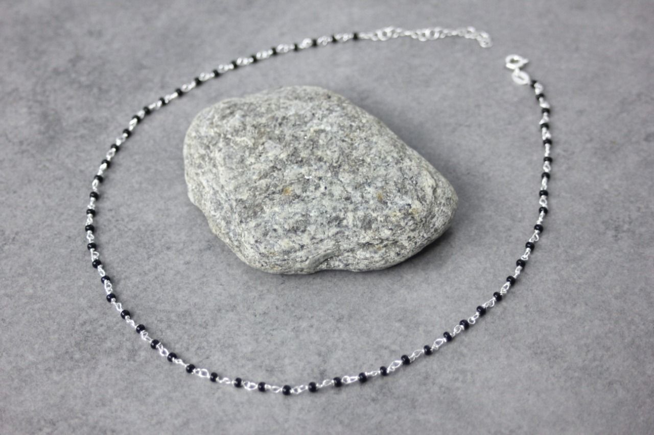 Collier en argent massif avec perles en pierres naturelles onyx noir. Longueur réglable.