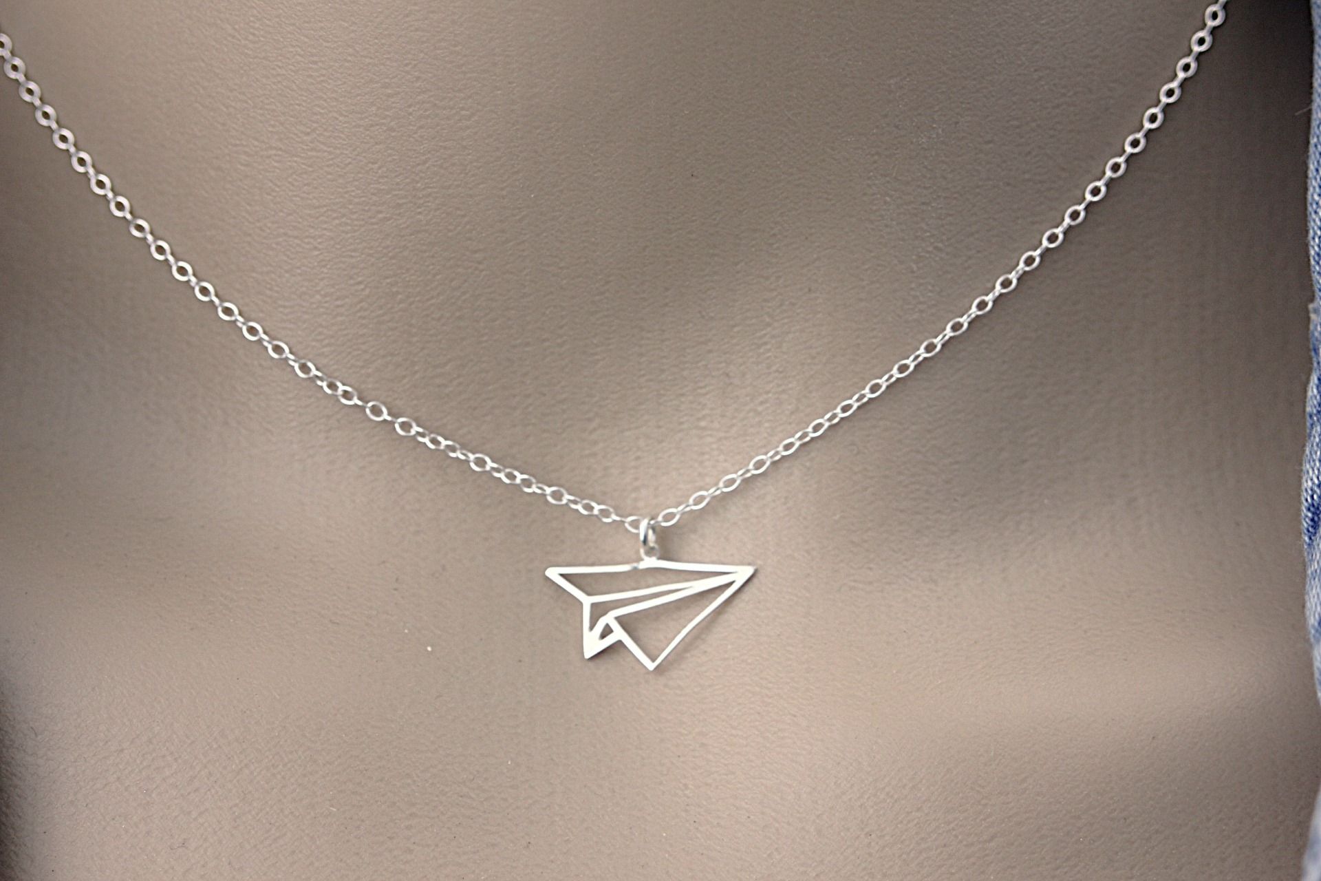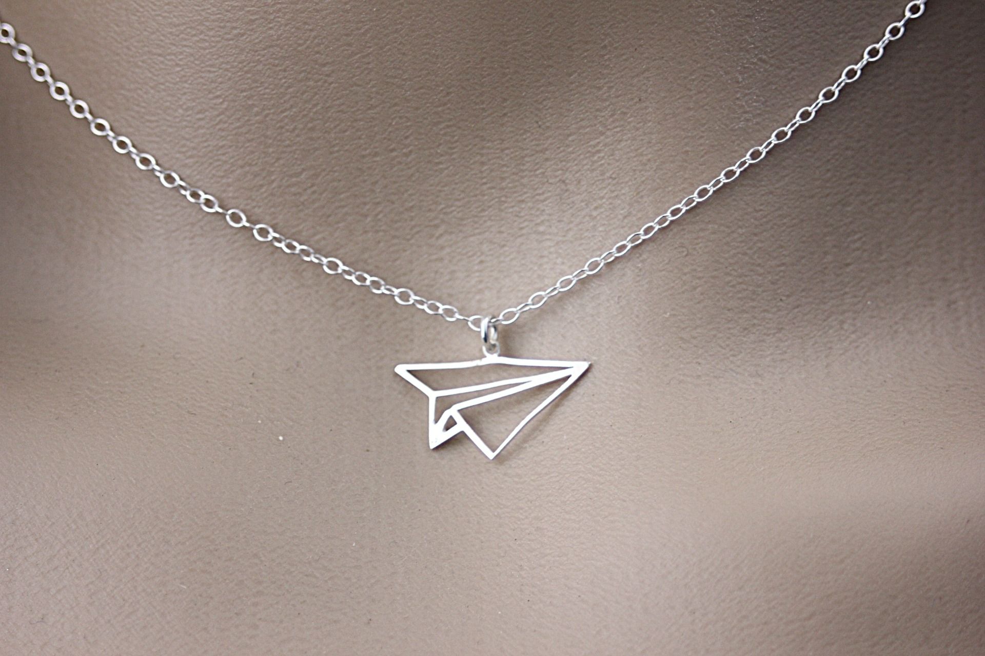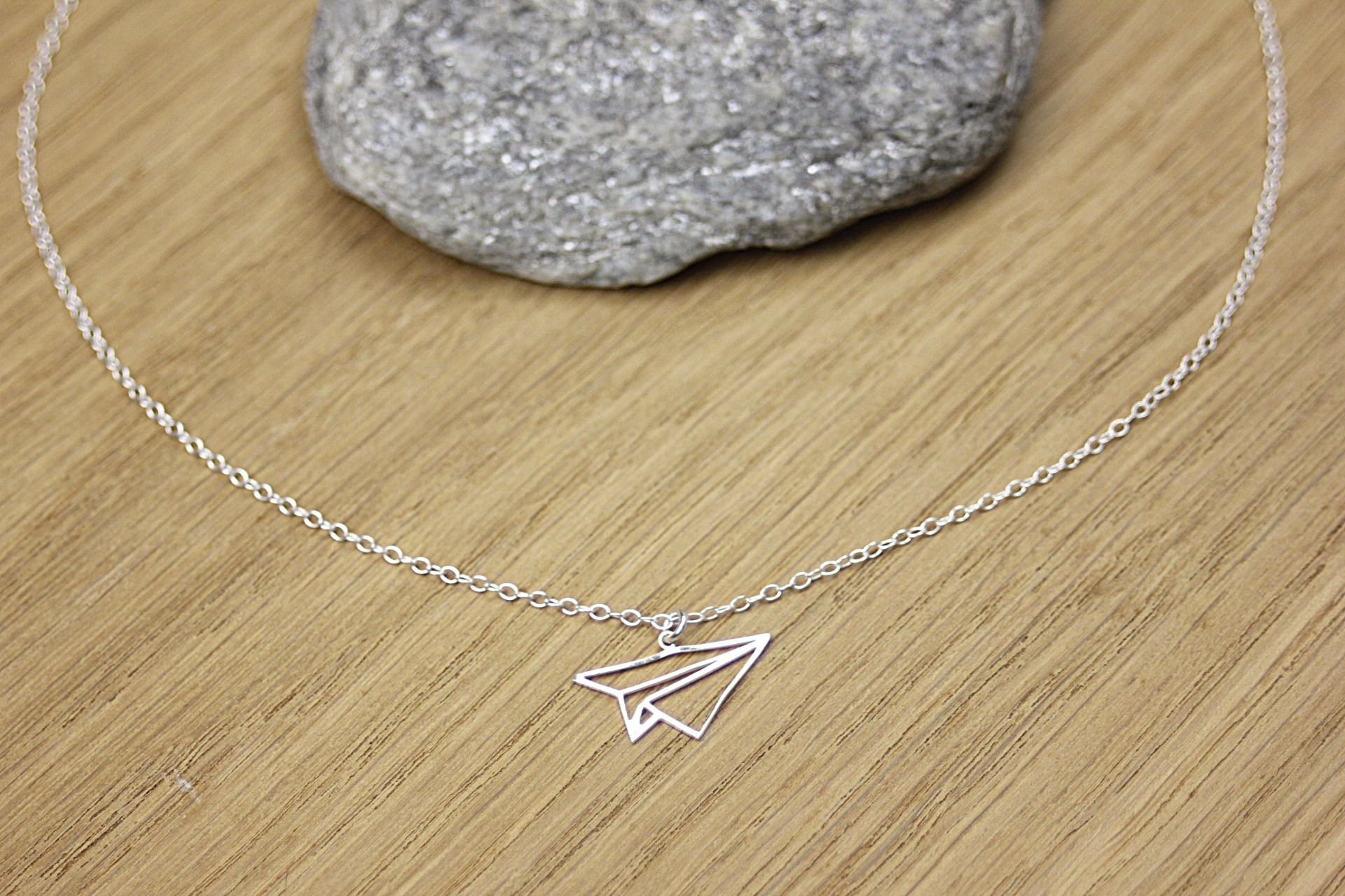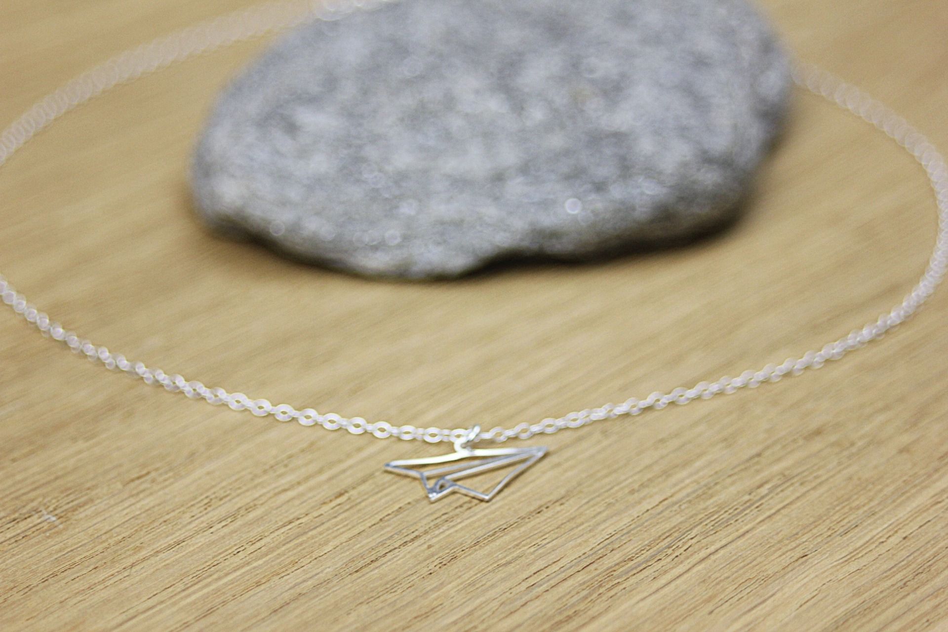 Collier en argent massif pendentif avion origami - collier minimaliste ras du cou - collier voyage - collier fin argent - collier origami