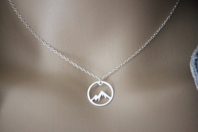 Collier argent massif 925 pendentif montagne enneigée - ras de cou fin et minimaliste