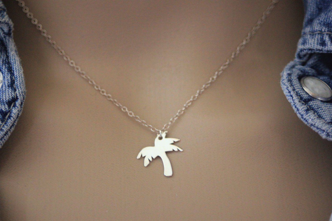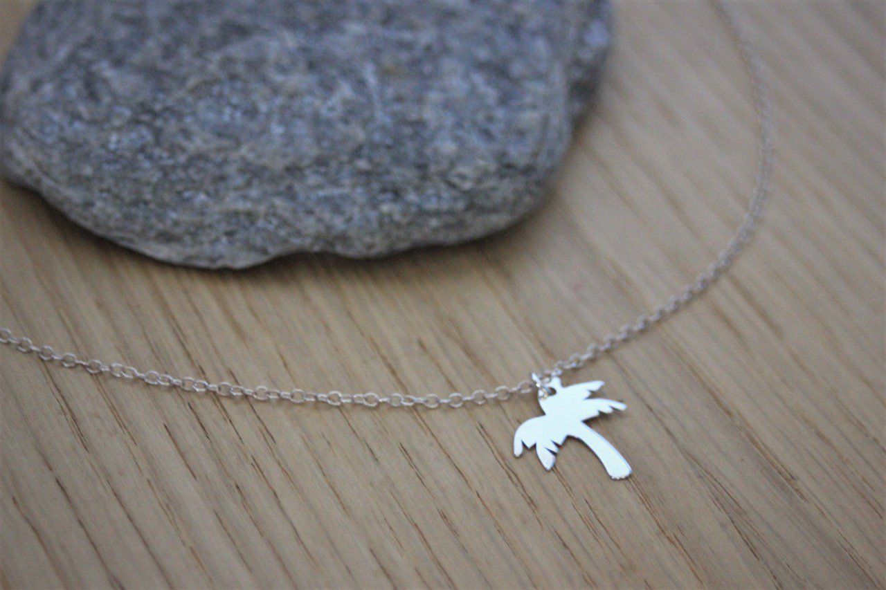 Collier argent massif pendentif palmier - collier fin en argent - collier minimaliste - collier palmier argent - ras de cou argent