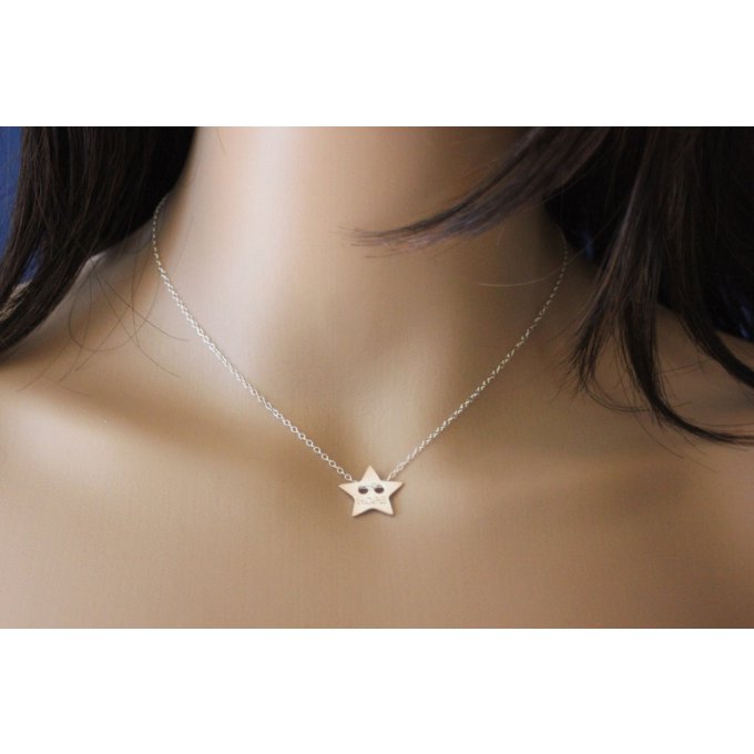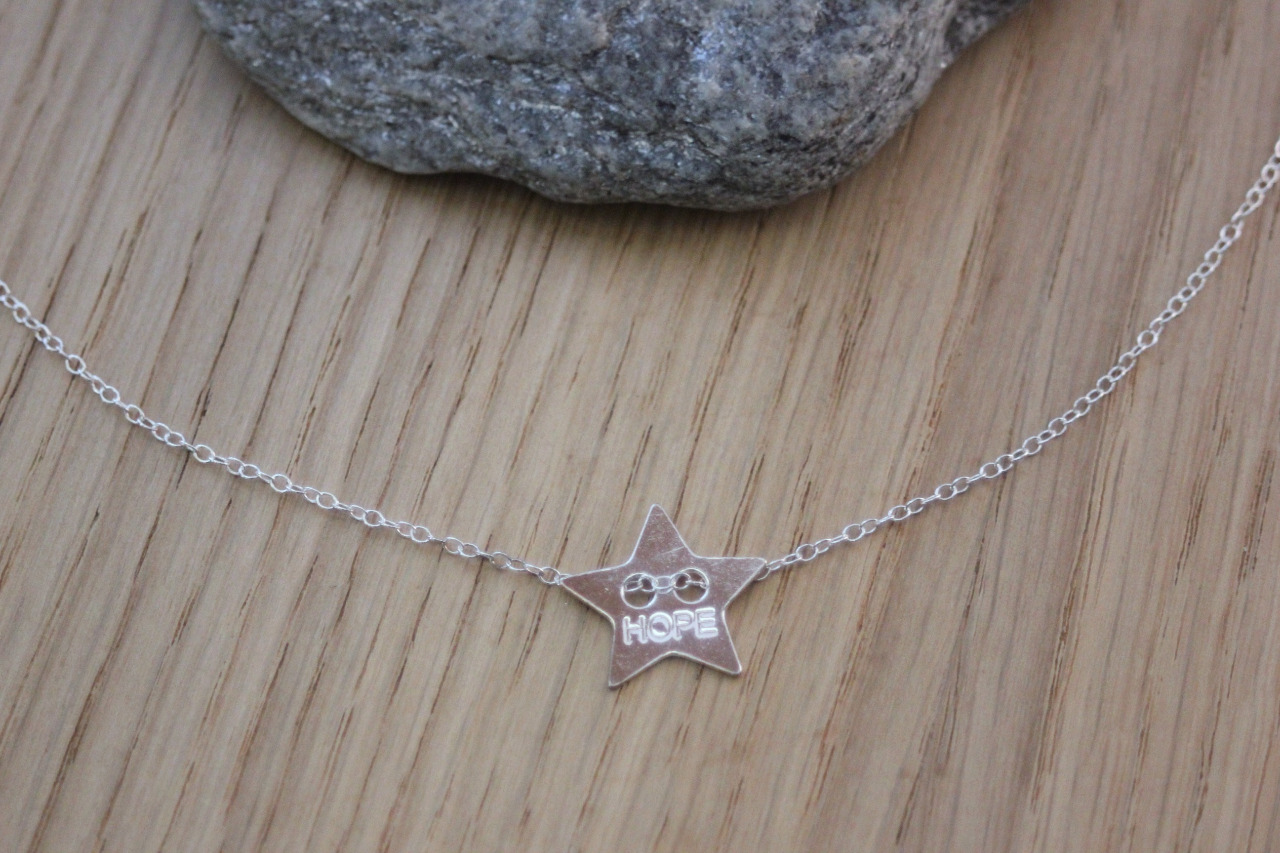 Collier argent massif avec médaille étoile gravée "HOPE" - Collier minimaliste ras de cou