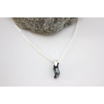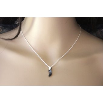Collier ras du cou de style minimaliste en argent massif avec pendentif "vague' en cristal swarovski noir. Longueur 40cm + 5cm de chainette d'extension.