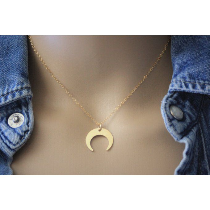 Collier ethnique en or Gold filled avec pendentif corne demi-lune en or gold filled. Longueur réglable. Plusieurs longueurs disponibles.