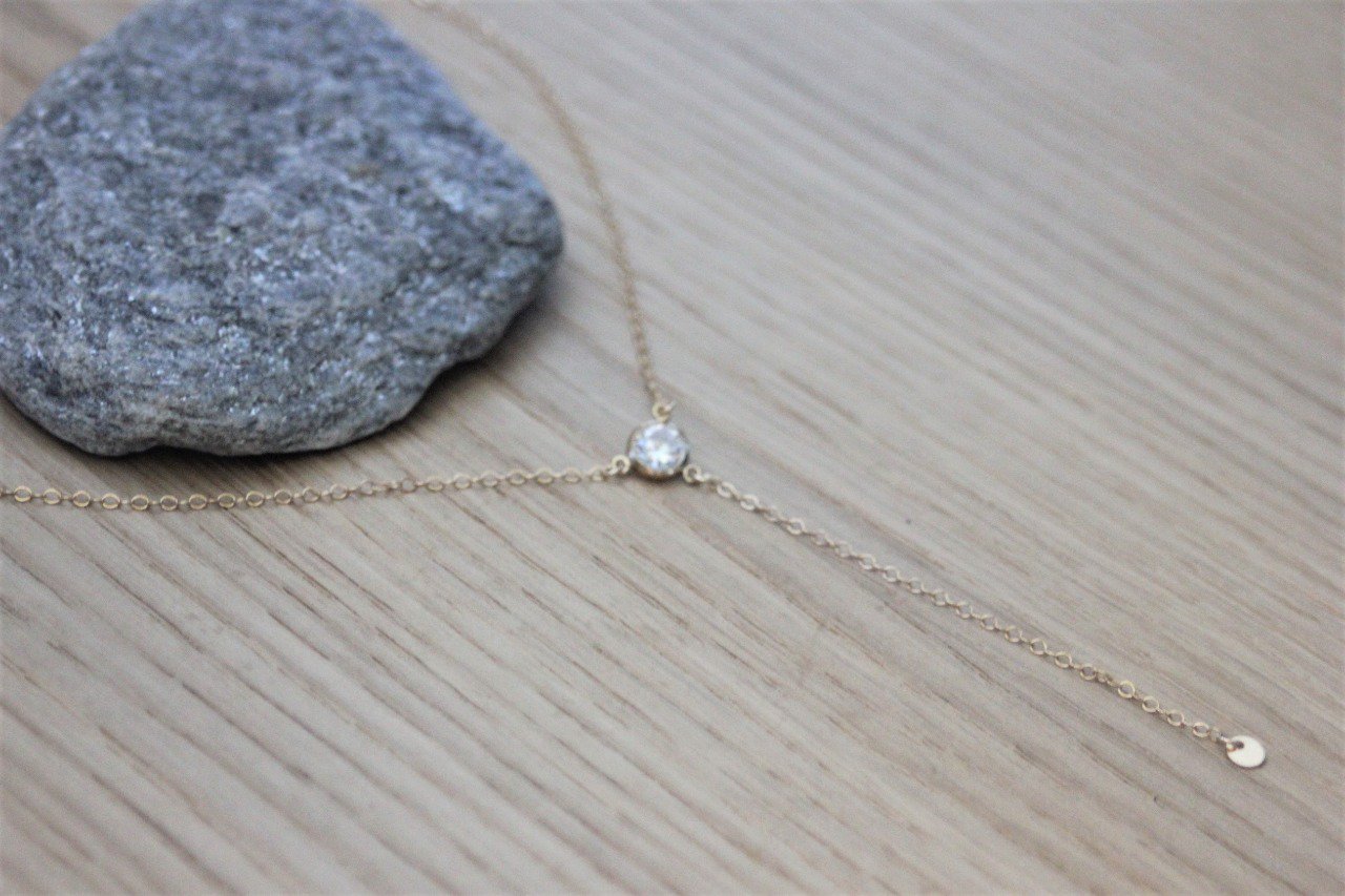 Collier cravate en or Gold Filled et zirconium - collier Y - collier géométrique - ras du cou en or - collier minimaliste