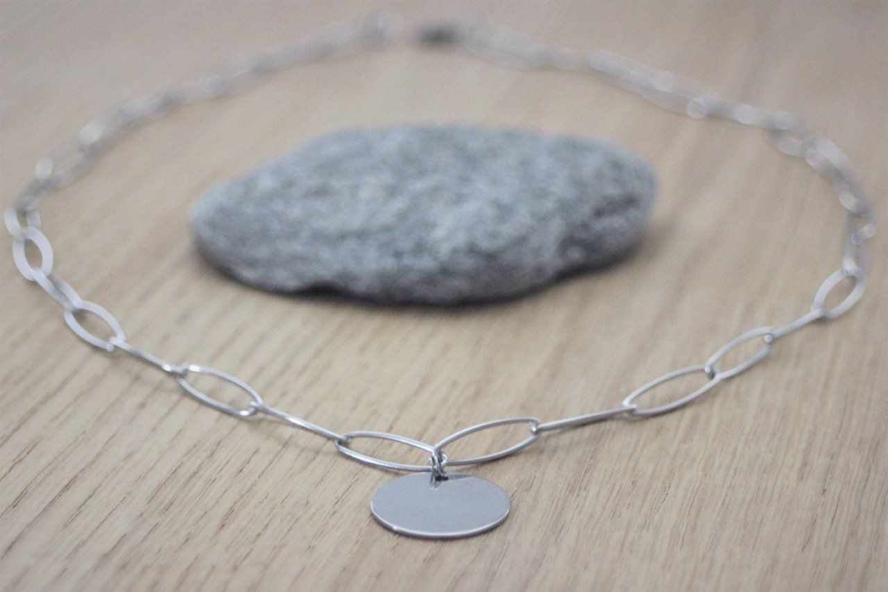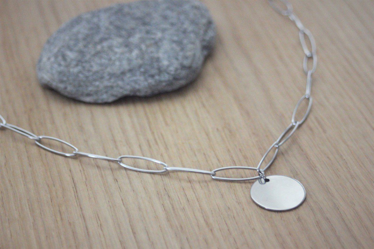 Collier en acier inoxydable pendentif médaille ronde - collier gros maillons - collier médaille