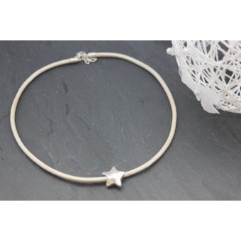 Collier en cuir blanc nacré et perle étoile en métal argenté.