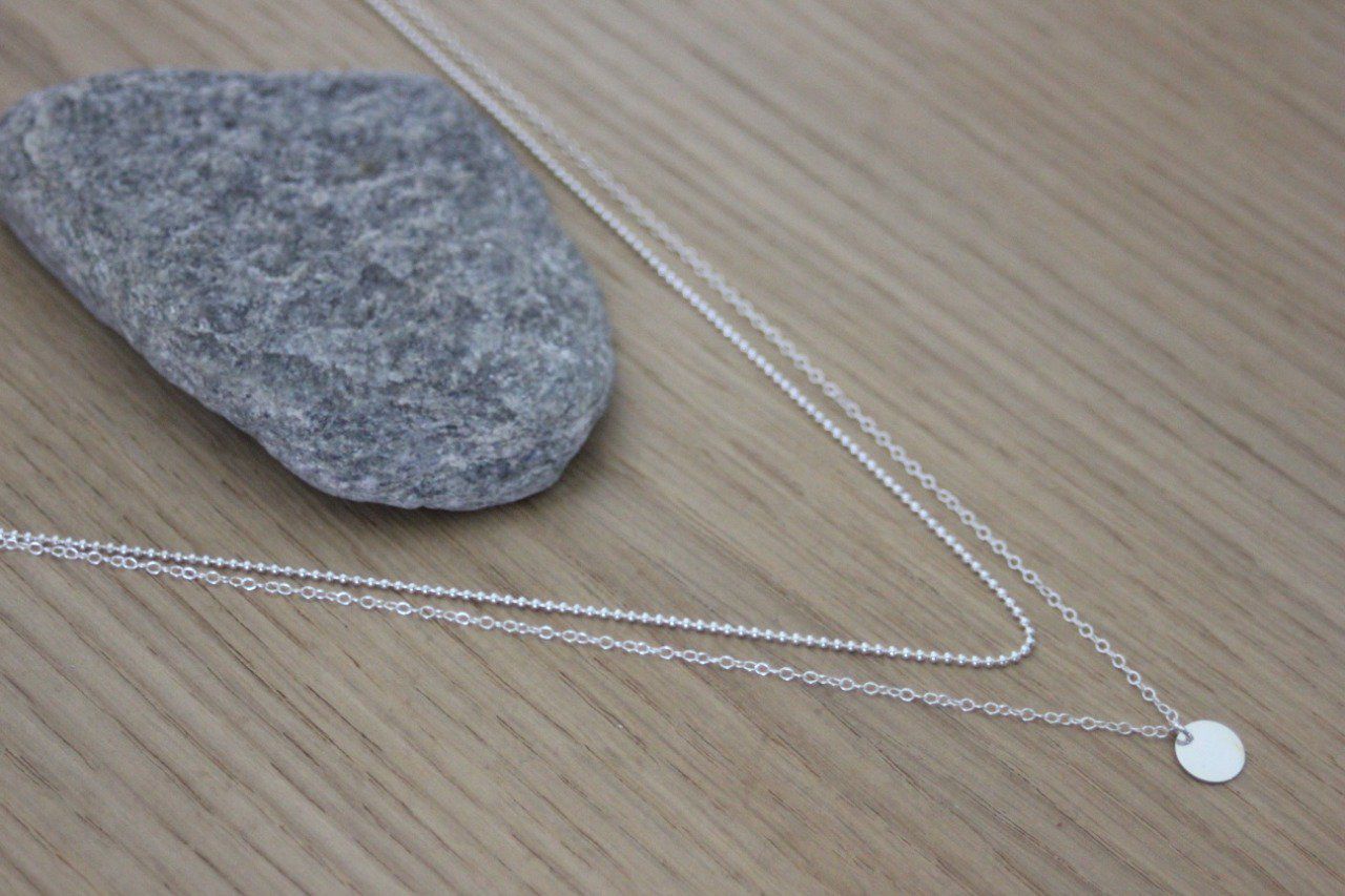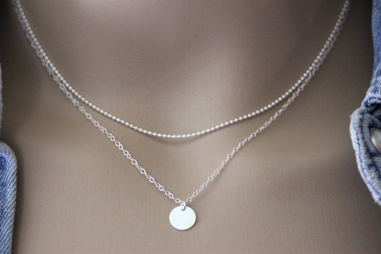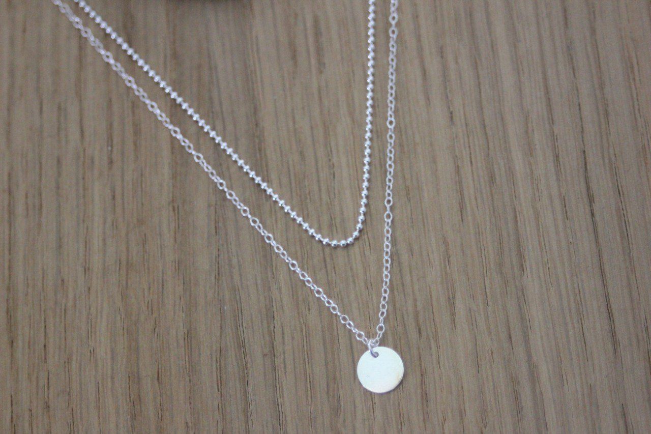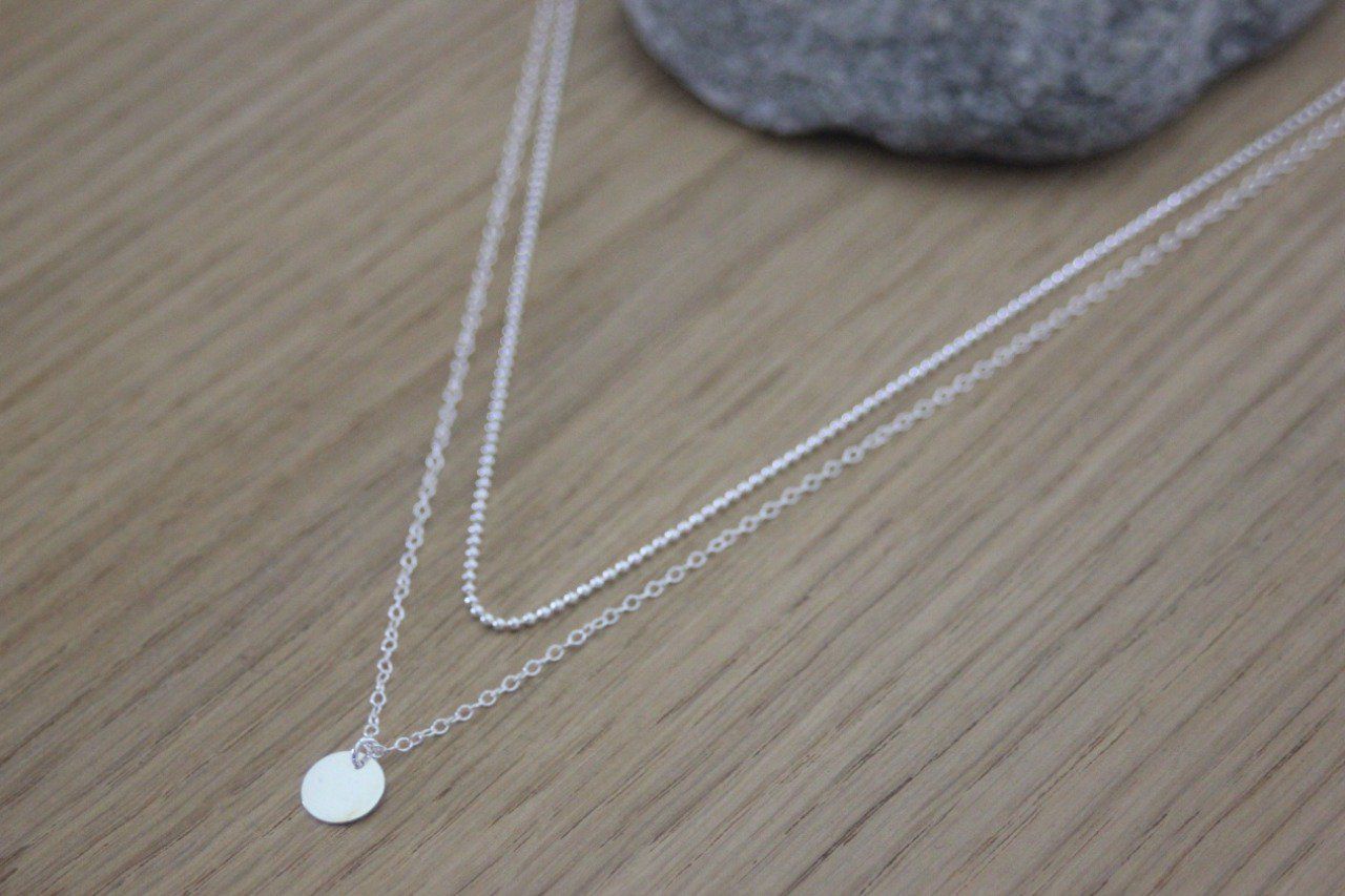 Collier en argent massif double chaine et médaille ronde - collier fin en argent - collier multi-rangs argent - choker argent