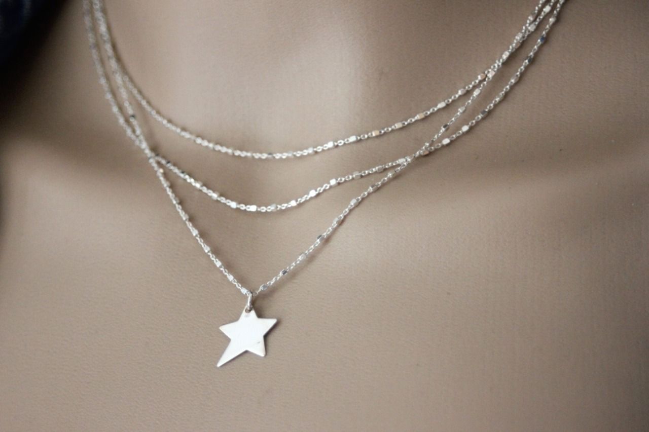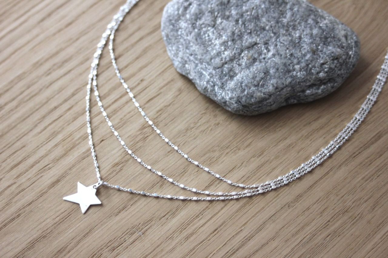 Collier multi-rangs en argent massif triple chaine et pendentif étoile - Copie