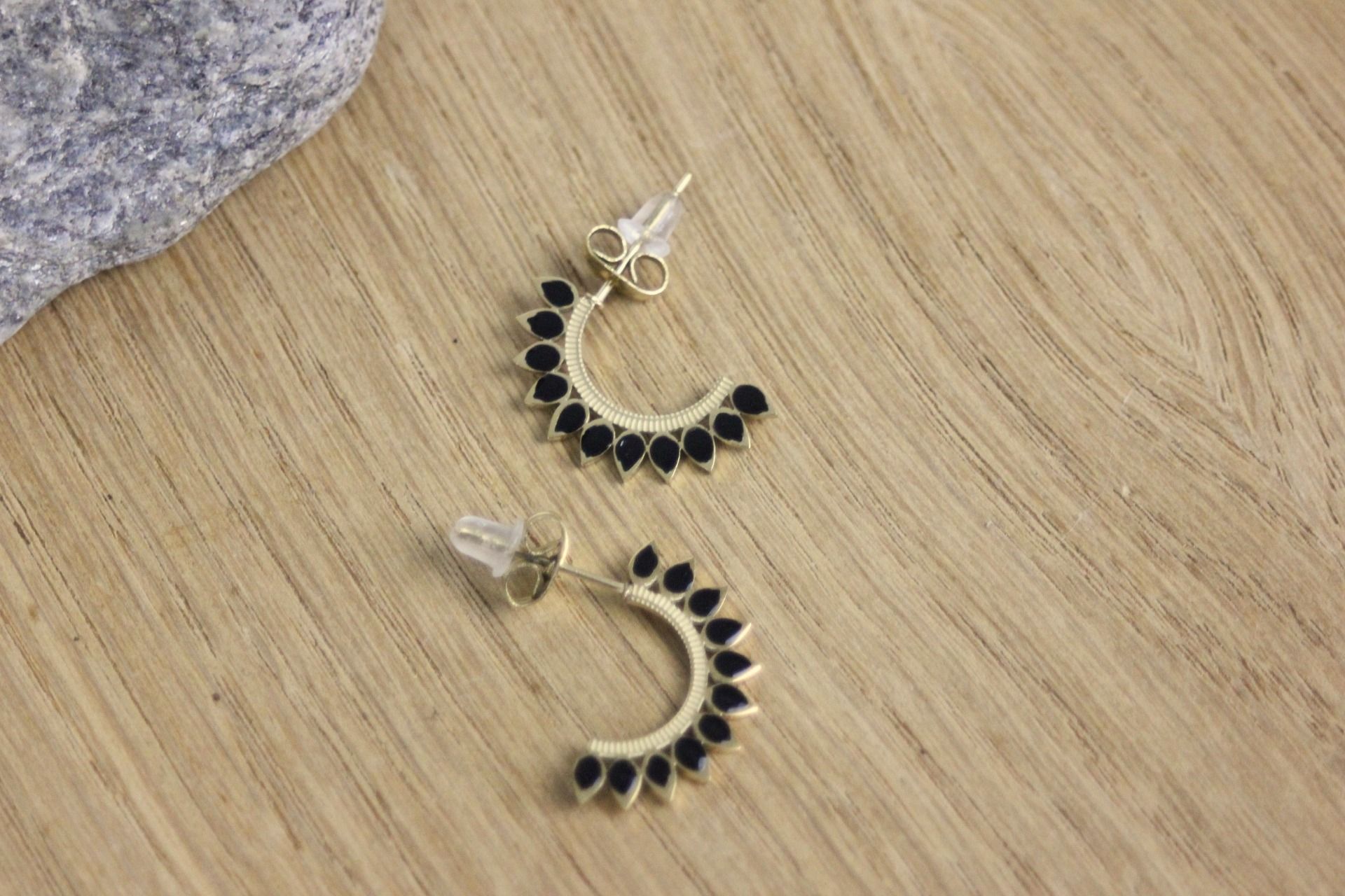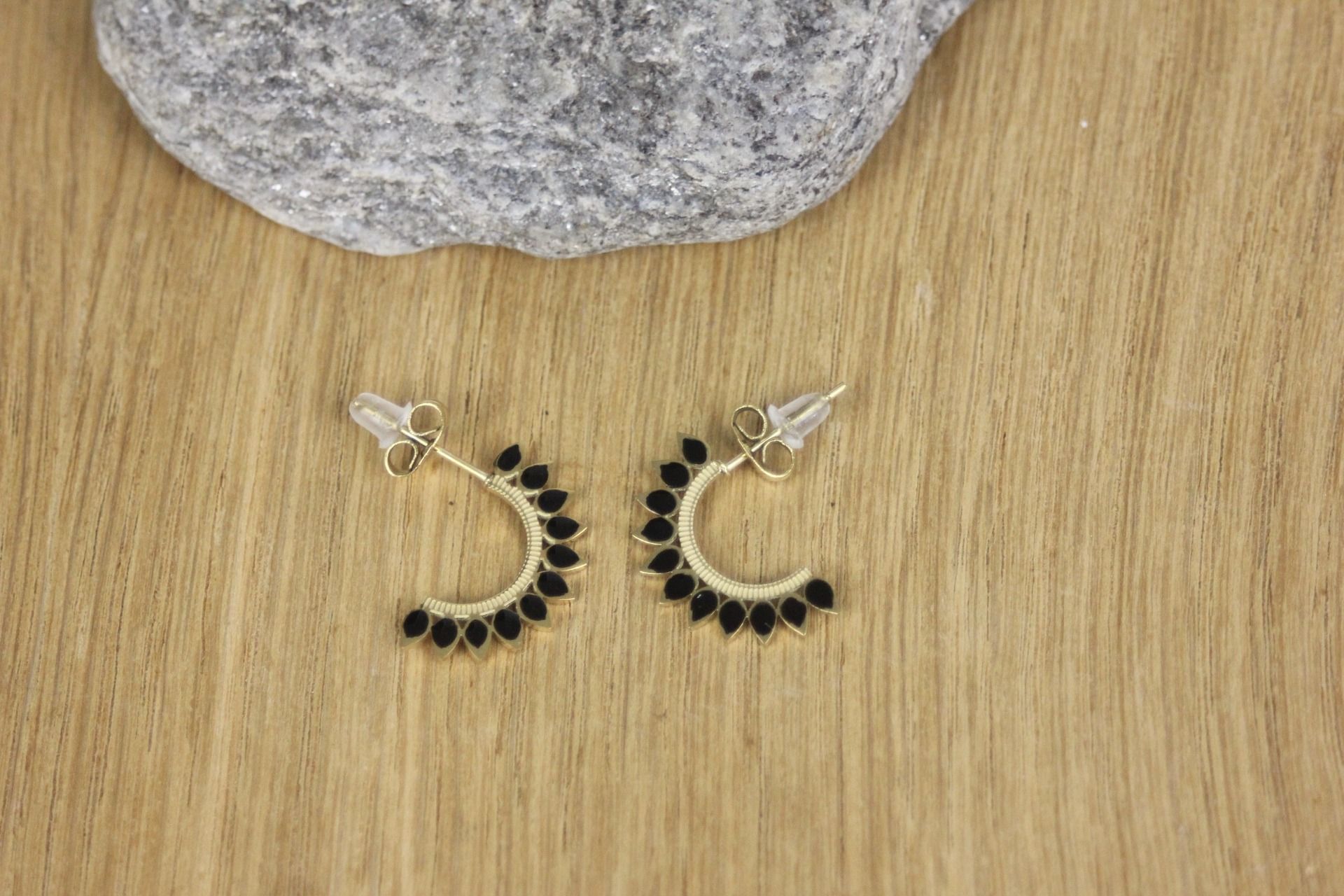 Boucles d'oreilles demi créoles ouvertes avec petites pointes en résine noire