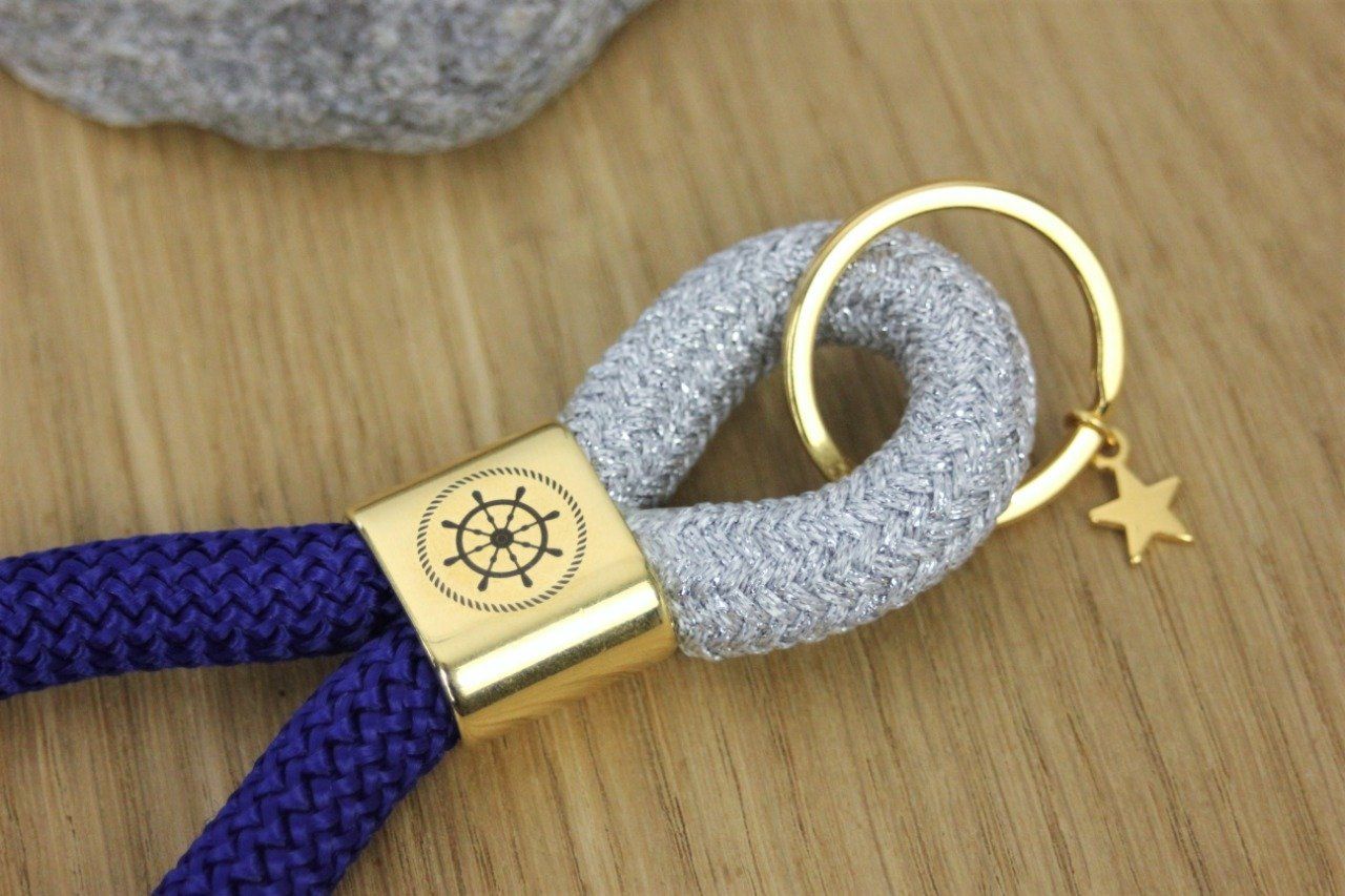 Porte clés XL en corde de voile - Porte clé marin - Porte clé doré à l'or fin