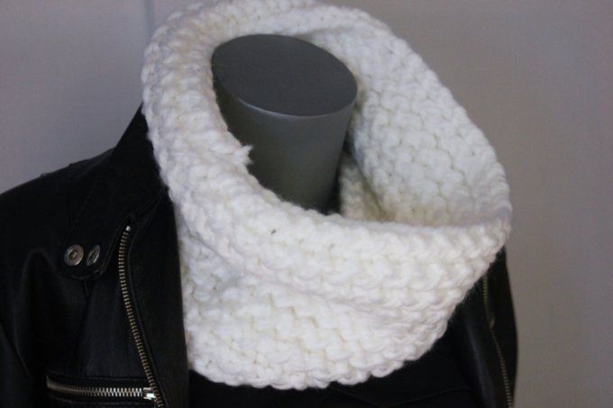 Snood en laine blanche oversize / Echarpe tube / Cache col